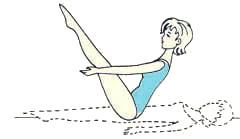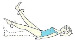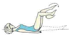 4. Это упражнение выполняйте как предыдущее, только затем согните ноги в коленях, подтяните их к животу, выпрямите и вытяните вверх. Вернитесь в исходное положение.