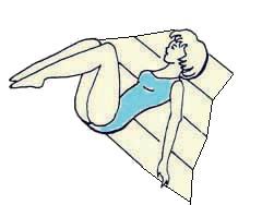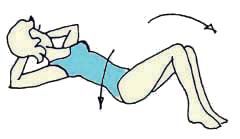 2. Лягте на спину, руки положите за голову. Поднимите согнутые в коленях ноги, причем угол между бедром и голенью должен быть равен 90о. Теперь напрягите мышцы живота и оторвите от пола верхнюю часть туловища.