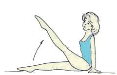 4. Сядьте на пол и создайте упор руками в положении сзади. Поочередно поднимайте, то правую, то левую ногу как можно выше (см. рис. 55). Ноги не сгибайте.