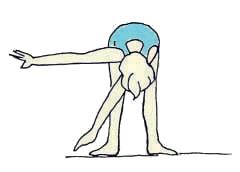 3. Встаньте прямо, ноги на ширине плеч, руки вытяните в стороны. Делайте наклоны вперед, поочередно касаясь каждой рукой носка противоположной ноги (см. рис. 57).