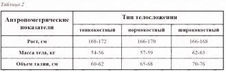 Окружность талии зависит от типа телосложения (см. таблицу 2).