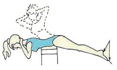 26. Исходное положение то же. Невысоко поднимите обе ноги, выпрямленные в коленях. Попросите кого-нибудь толкать их в низ, а вы старайтесь удержать их поднятыми.