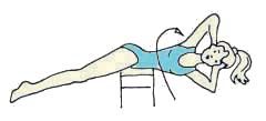 11. Лягте на пол на правый бок, стопы положите на сиденье стула или диван. Поднимайте туловище, надавливая при этом на сиденье.