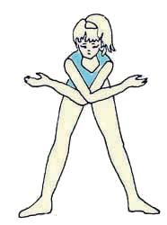 1. Встаньте прямо, ноги вместе, руки на поясе. Делайте “танец живота” – втягивайте и выпячивайте живот, не забывая о правильной осанке.