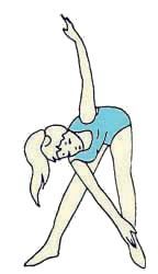 24. Выполняйте как предыдущее упражнение, но без помощи рук. Затем обхватите стопы руками и дотянитесь лбом до колен. Вернитесь в исходное положение.