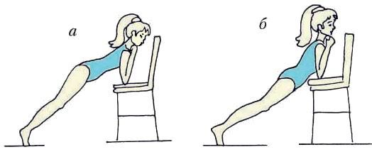 7. Вытяните тело в струнку и упритесь локтями в стул. Приподнимайте (см. рис. 71а) и опускайте тело (см. рис. 71б):