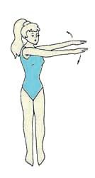 4. Встаньте прямо, ноги поставьте на ширину плеч, руки разведите в стороны. Делайте наклоны вперед, при этом скрещивая руки перед грудью и разводя их в стороны (см. рис. 68)