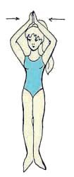 2. Встаньте прямо, ноги поставьте вместе, прямые руки скрестите над головой. Теперь левой рукой сильно нажимайте на правую в течении пяти секунд, а правой рукой пытайтесь противостоять левой руке (см. рис. 74). Затем поменяйте руки.
