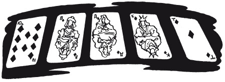 Из карт, масть которых совпадает с выбранной, оставляйте только крупные, начиная с десятки и выше. Если в какой-то части не окажется ни одной из пяти нужных крупных карт, то отбрасывайте всю часть. Когда попадается одна из карт нужной масти, то сразу переходите к следующей части.