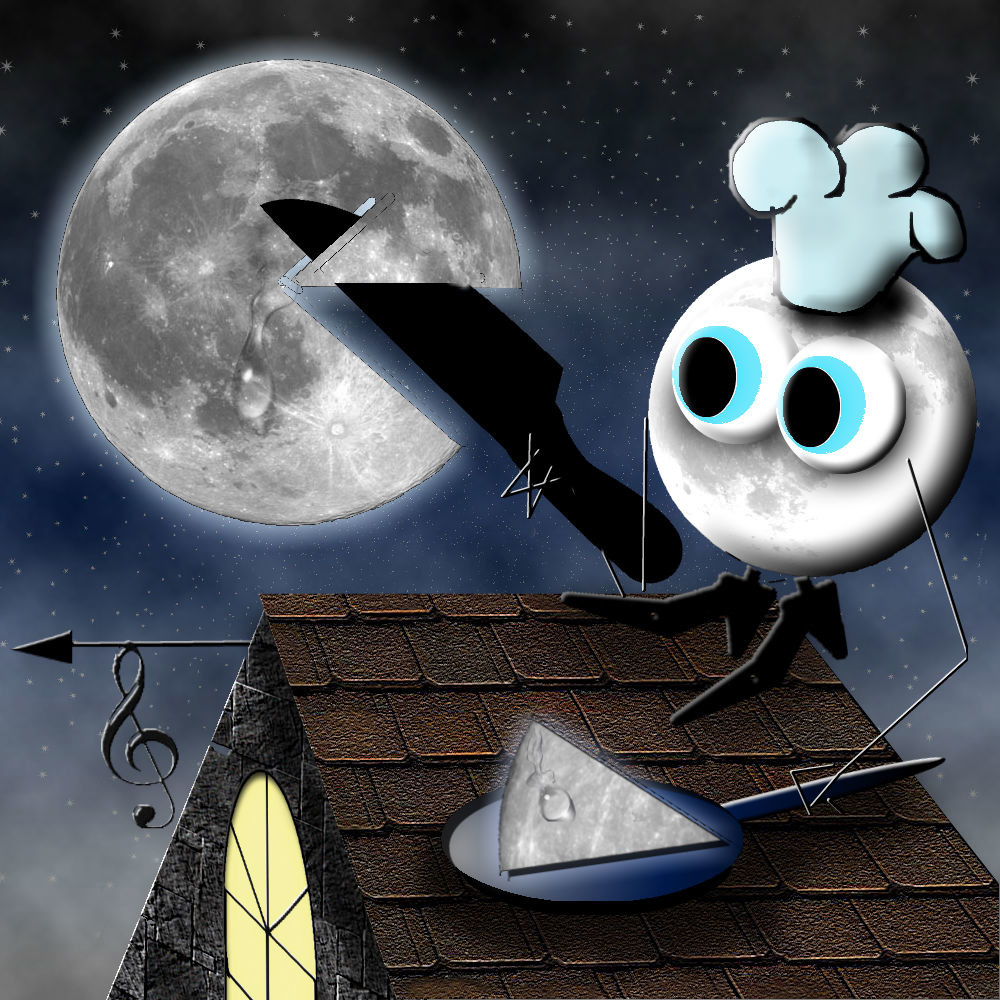 Существо, похожее на Луну, взобралось на крышу, достало нож, и, отпилив от настоящей Луны кусочек, спрыгнуло во тьму.