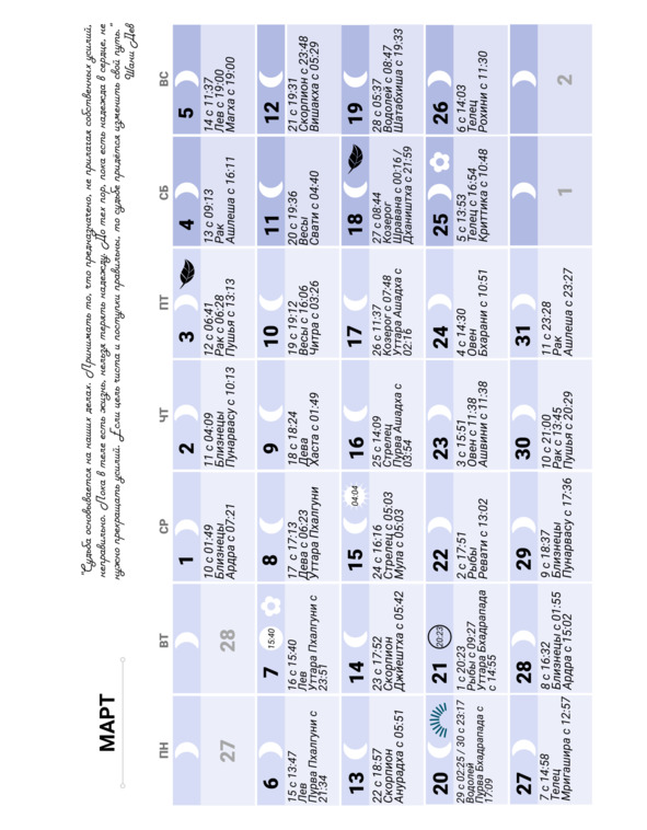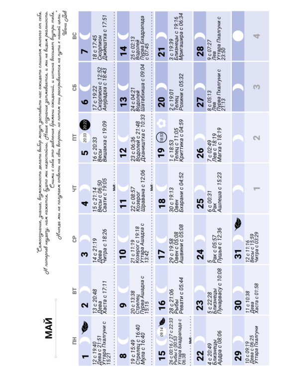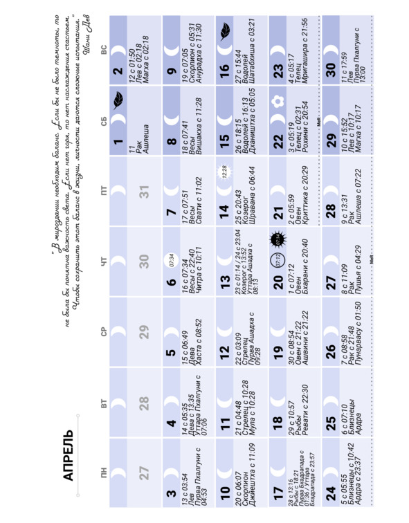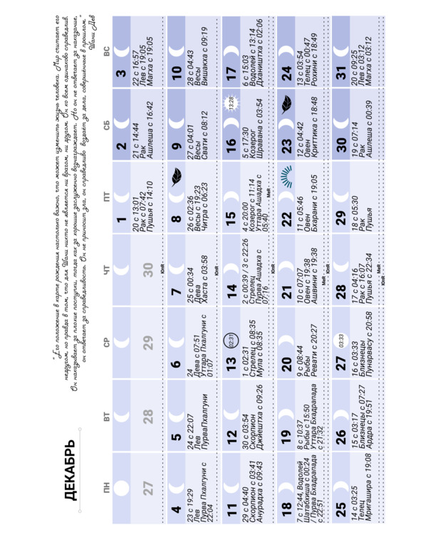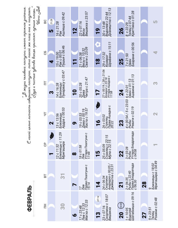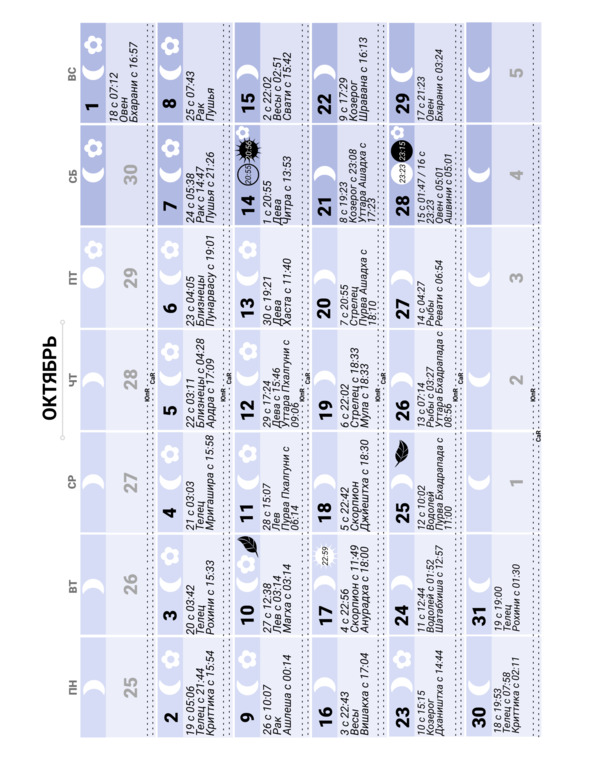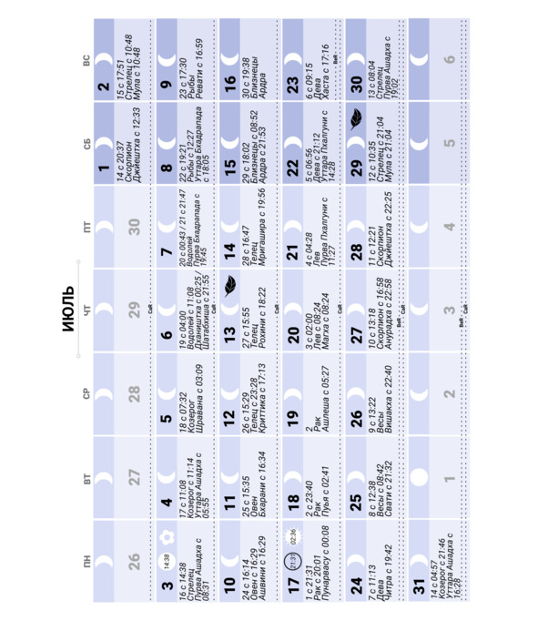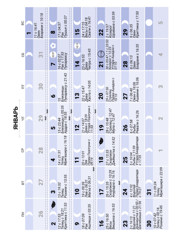 Лунный календарь на 2023 год. Ведический, индийский
