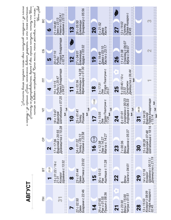 ~ полнолуние – 1 и 31 августа
