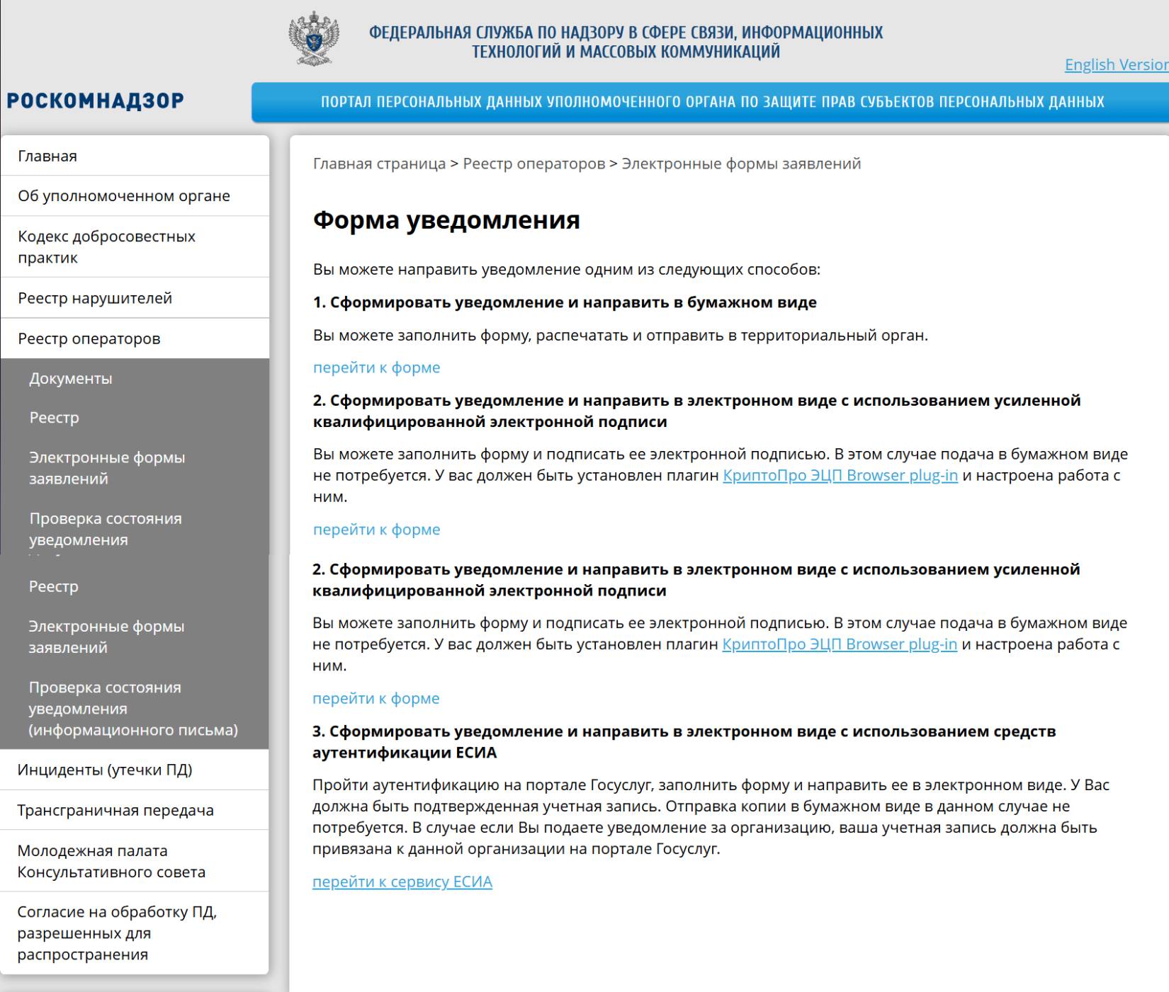 Как подать уведомление о сборе персональных данных в Роскомнадзор. Инструкция