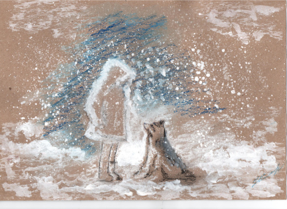 Был холодный зимний вечер. Такой лютый холод бывает только в феврале. Люди ежась от мороза быстро пробегали мимо несмотря по сторонам. А по парку, под ногами бегал маленький веселый щенок. Мягкий комочек черной шерсти с белыми лапами и голубыми глазами, красоту которых подчеркивала черная маска. Это был щенок породы «Хаски» Щенок был месяца четыре от роду, наверное, еще малыш, но уже достаточно крепкий. Когда Анджелинка присела на корточки щенок просто заглянул ей в глаза и лизнул нос. Такой горячий поцелуй Анджелинка никогда еще не получала.