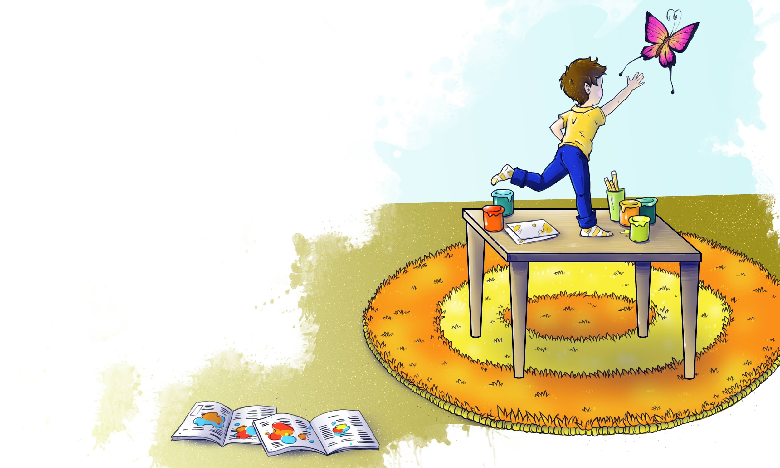 He was just about to go and help Tim, who was getting tired from running about, when the butterfly flew toward the table near Papa's newspaper and Tim's new watercolors, then suddenly flitted upward. The next second Tim had jumped up onto the chair, then onto the table, then leaped over both the table and his father. And everything might have ended well if Tim hadn’t knocked over his wonderful watercolors.
