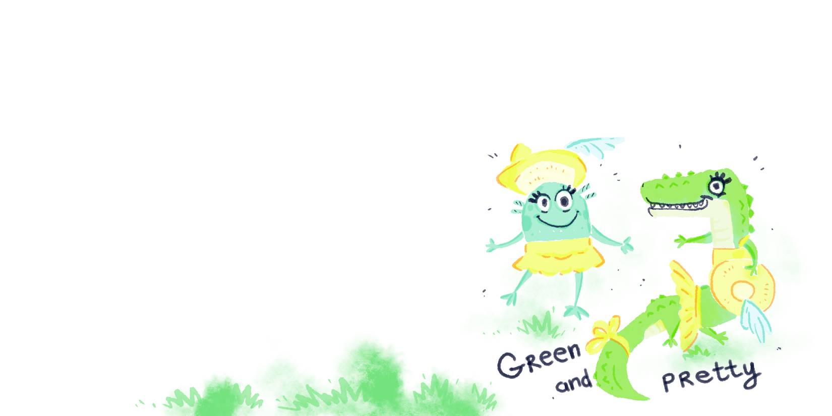 “Uh-oh; now you’ve hurt the frog’s and crocodile’s feelings,” said Mama. Then she wrote, Green and pretty.