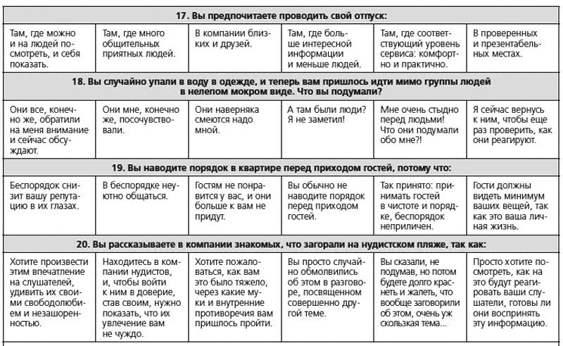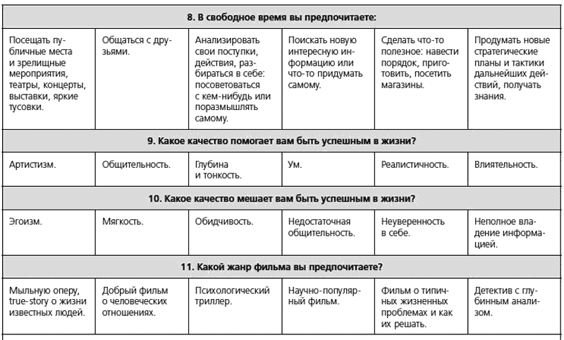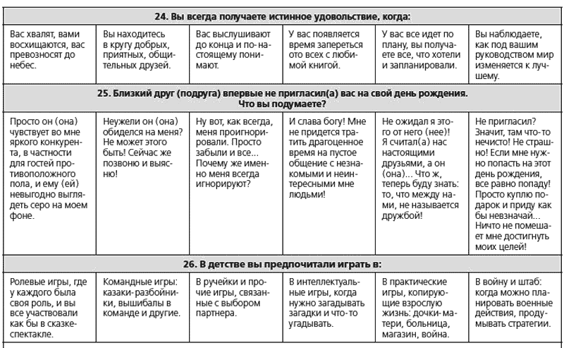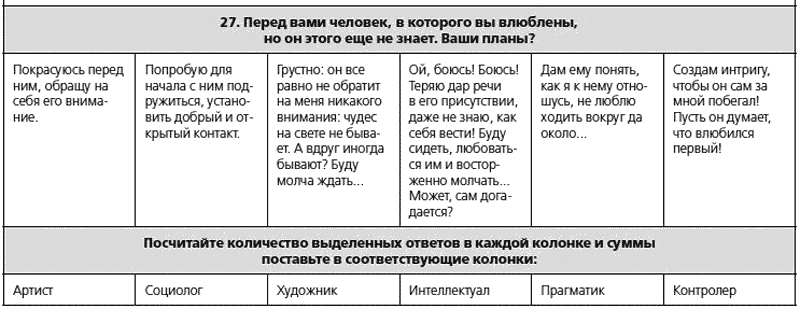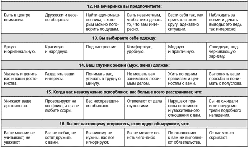 Колонка или две колонки, получившие максимальное количество ответов, отражают доминирующие типы характеров для вас.