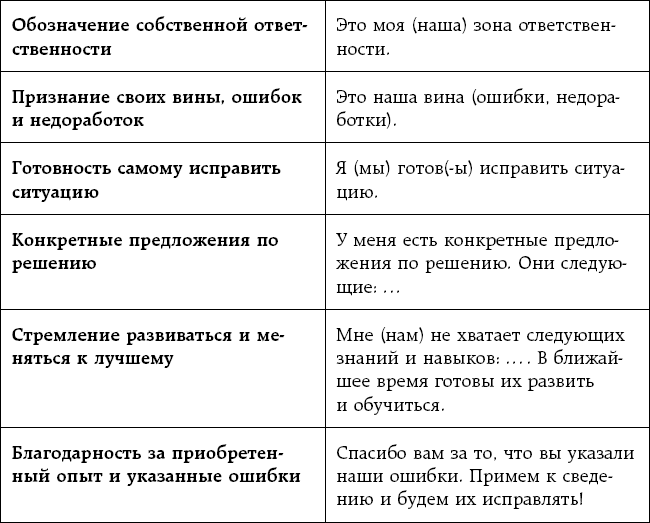Другие консультанты на критику их работы отвечали признанием собственной вины, выражением готовности исправить ситуацию и конкретными предложениями по решению проблемы. После такой реакции наши клиенты, как правило, успокаивались, проникались доверием к тренеру и принимали конструктивное решение по исправлению ситуации. Дополнительные тренинговые и консультативные мероприятия проводил для них тот же самый тренер, в результате чего, клиент, как правило, оставался доволен.