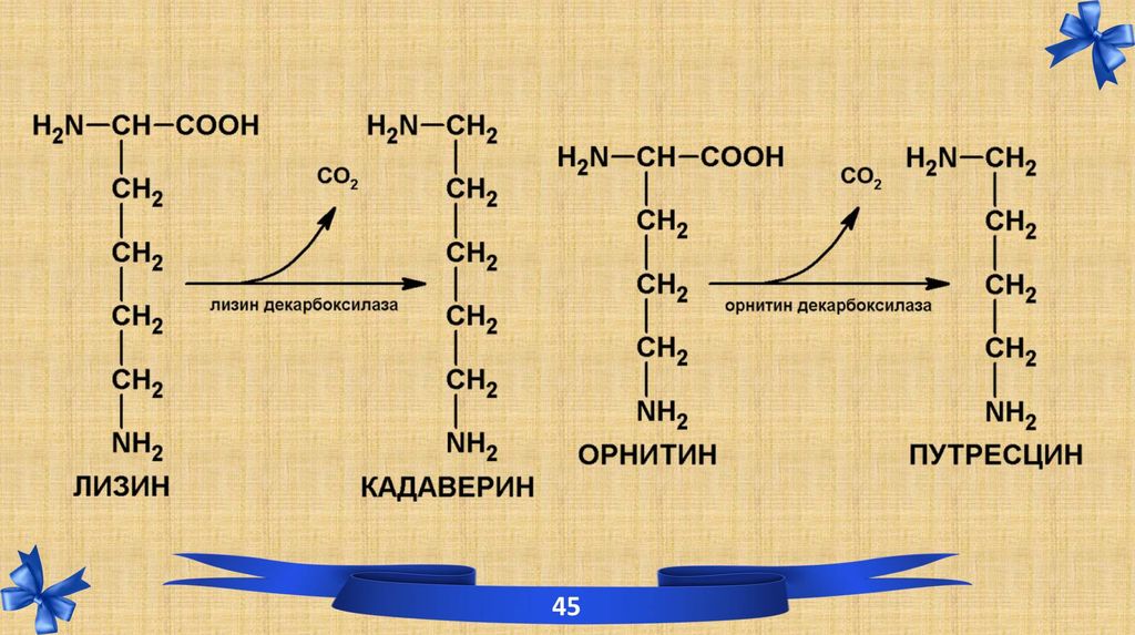 Кадаверин и путресцин – активные диамины, выводятся с мочой. А также: