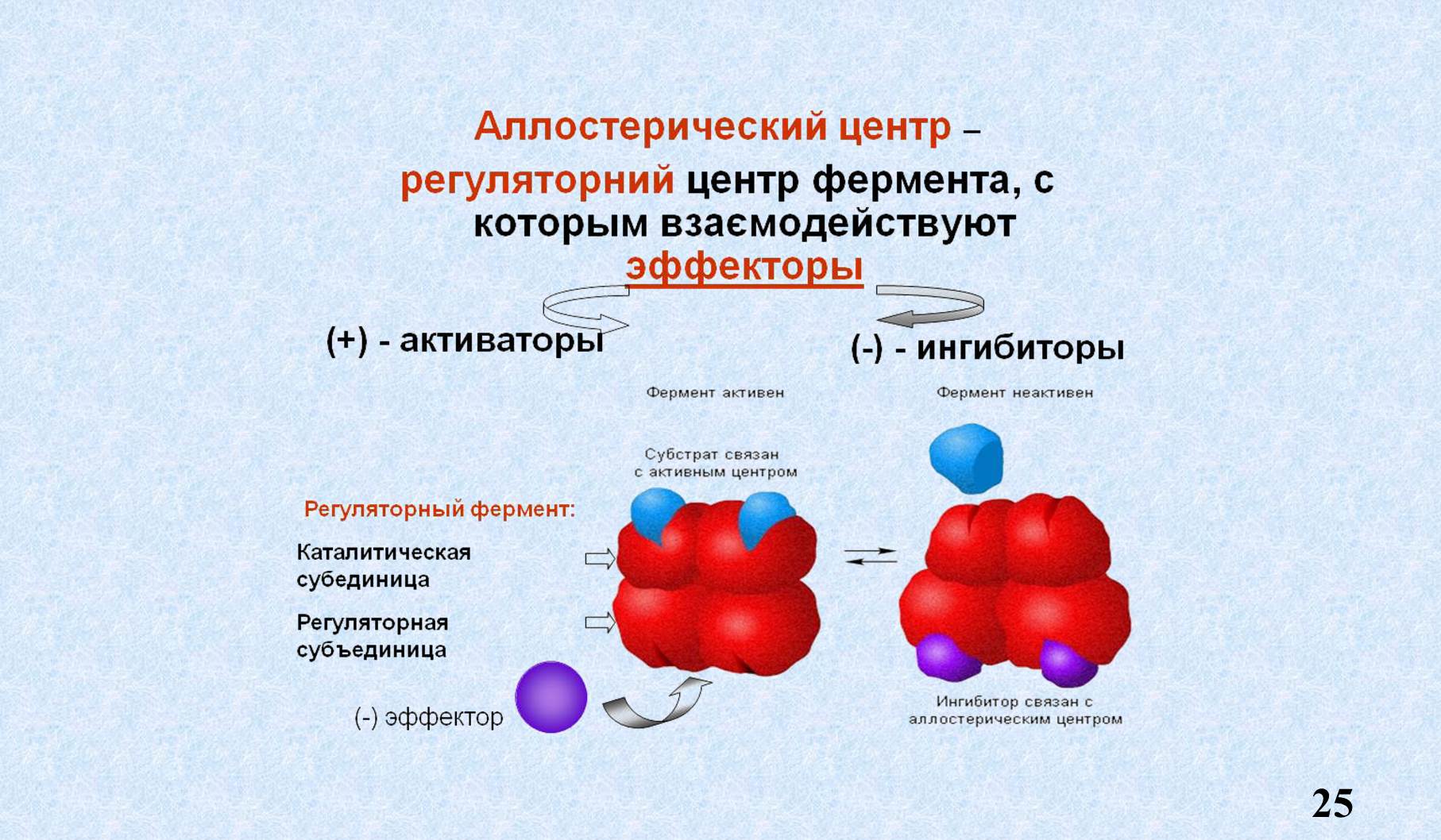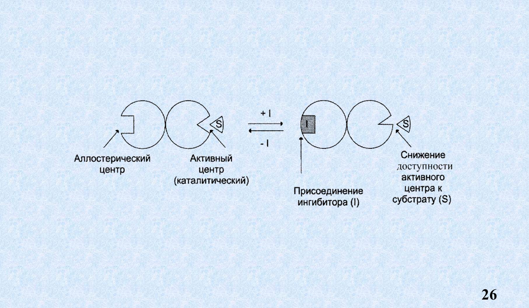Как мы видим продукт реакции по типу обратной связи взаимодействует с аллостерическим центром, меняет пространственную конфигурацию фермента и образование ES становится невозможным. Это называется аллостерическое ингибирование или ретро ингибирование, или ингибирование продуктом реакции по типу обратной связи.