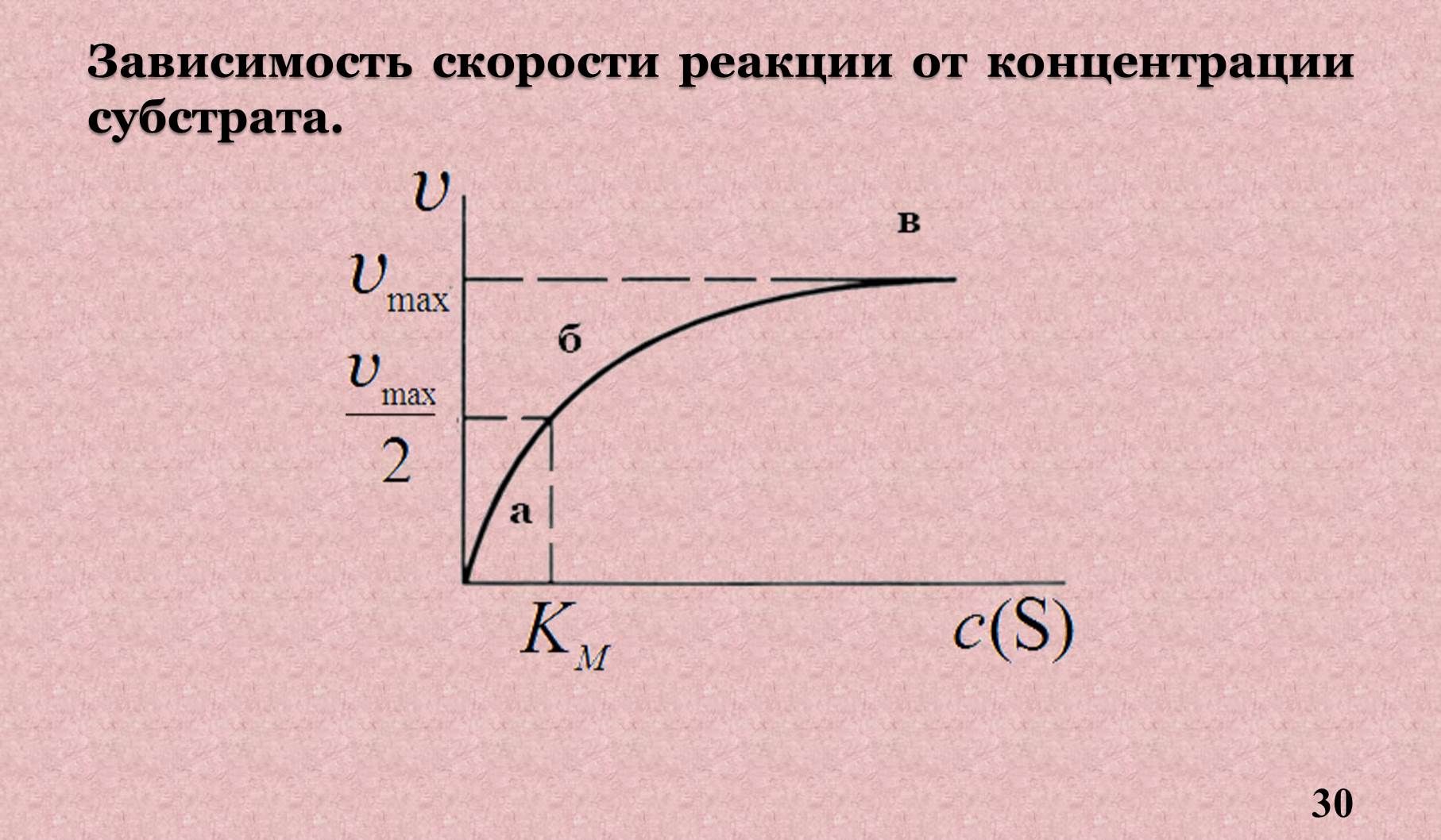 в – реакция нулевого порядка когда V = V max, и не зависит от концентрации S.