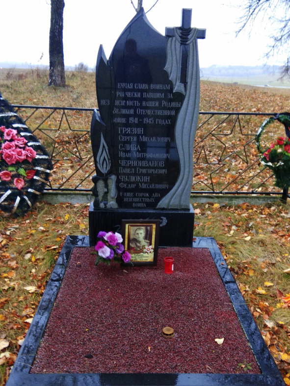 Теперь известно, что в этой могиле также захоронены солдаты 472 гаубичного артиллерийского полка 2-ого Белорусского фронта, которые погибли в бою 6 июля 1944 года. Среди них – разведчик Яков Николаевич АНТОНОВ, уроженец хутора Глушица Сталинградской области, награжден орденом Красной Звезды (10.07.1944); ст. радиотелеграфист Николай Давидович БАРАНОВ, уроженец села Ольшанка Винницкой области, награжден орденом Славы 3 ст. (11.03.1944); командир батальона Соломон Давидович (Саломон Давыдович) БЛЯХЕРОВ, уроженец города Павлов, Днепропетровской области, был награжден медалью «За боевые заслуги» (02.06.1943), орденом Александра Невского (06.10.1943), орденом Отечественной войны 2 ст. (29.07.1944); разведчик Иван Васильевич КОЛЕСНИКОВ, уроженец села Ново-Завод Читинской области, награжден медалью «За отвагу» (04.04.1943); разведчик Владимир Алексеевич КОЧНЕВ, уроженец села Бегучи Пензенской области, награжден медалью «За боевые заслуги» (07.09.1943); ст. разведчик Алексей Николаевич ОГНЕВ, родился в Москве, награжден орденом Красной Звезды (10.03.1944); телефонист Павел Кириллович ПАЛЯЕВ, уроженец Волоколамска Московской области.