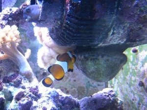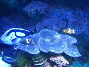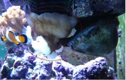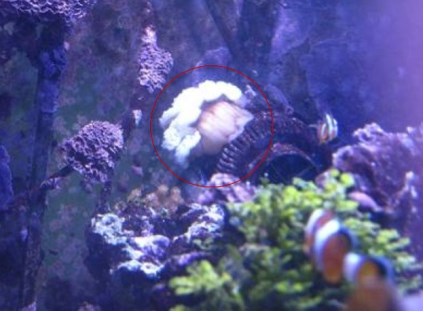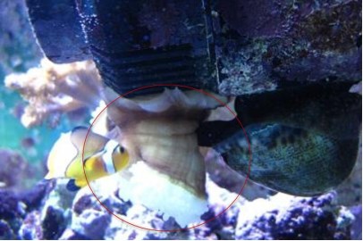 Домиком для Оцеллярисов на тот момент служила 15-сантиметровая ракушка-тридакна, взращиваемая мной с начала 2008 года. Но, поскольку по обычаю многих Тридакн, на ночь "домик" закрывался (одна "труба" наружу торчала, ну то есть сифон), то оцеллярисы всё темное время суток тусили в одном из аквариумных углов .