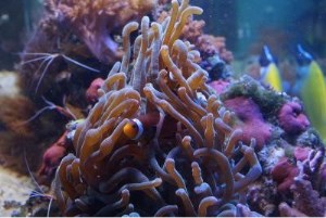 Вопрос меня мучает только один: почему нельзя было проплыть еще несколько сантиметров и воцариться в роскошной пузырьковой актинии (купленной в марте в виде 4-см недомерочки), которая уже скоро из аквариума щупальцы начнет высовывать, такой слон вымахал, а ведь покупалась исключительно для Сладкой Парочки… Это моя третья актиния. Первая была пузырьковая и клоуны в ней заселились, но … зверюшка была своеобразная, про нее отдельная большая история. Вторая была Гетерактис Малу, с ней тоже была весьма интересная история, но клоуны так и не почтили ее своим вниманием. В конце концов она сгинула.