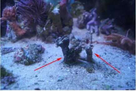 Как-то раз (год-два назад) Мамзель разыгралась не на шутку, и в очередной раз принялась переставлять все, что не приколочено. Ну как переставляет Хепатус – все в курсе. Подняли в возду… тьфу, то есть просто – подняли повыше, перенесли – бросили. А я как раз купила парочку новеньких, симпатичных, не слишком дорогих по причине своей малости, кусочков – «саженцев» кораллов. Они-то и стали главным объектом "перестановок".