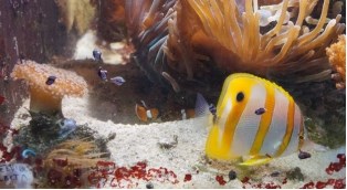 Айптазия, видя такое дело, спешно переехала на ту сторону, что была поближе к стенке, но, по причине своего неслабого размера (и маленького "насиженного" ей камня), все равно оставалась на виду… замечу – полтора месяца оставалась на виду у Хелмона Полосатого, Редкоспящего!