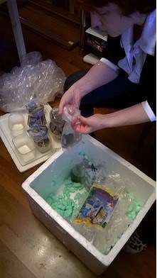 Пустила пакеты с крабиком и креветкой плавать по поверхности аквы, огородив их так, чтоб они не попали на "солнцепек" под свет металлогалидных ламп.