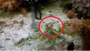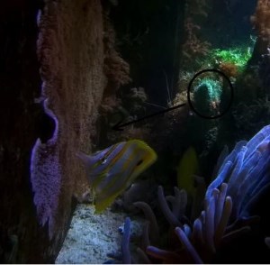 Загребая плюшкой как веслом, он попал на самый край актинии, тут же оседлал пару щупалец, и принялся помахивать "бокорезами", устраиваясь поудобнее … а утром обнаружился в другой "голове" актинии, но тоже на самом краю, и близко к дисплейному стеклу, так что его видно,и это приятно.