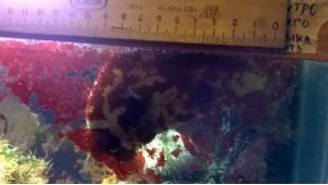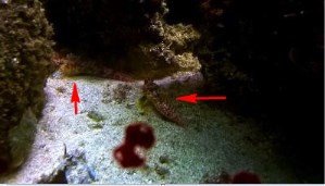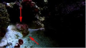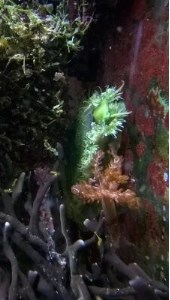 как видно на фото, Айптазия делила жилплощадь вместе с многообещающе растущим саркофитоном – собственно, это было главной причиной для перемещения, а не мои, как можно подумать, наклонности к лицезрению процесса поедания одной морской зверюшки – другой.