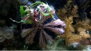 Сначала он на нее слегка наполз, повинуясь своим ежиным инстинктам, но потом устыдился, и пошел вниз, на стрим, косить слегка подросшую каулерпу … А Версия 1 принялась осваивать держатель того же стрима… наверно, задумала его скусить втихоря, чтоб стрим упал вместе с Сальмацисом, а потом вдоволь похихикать над нерешительным Ёжей…