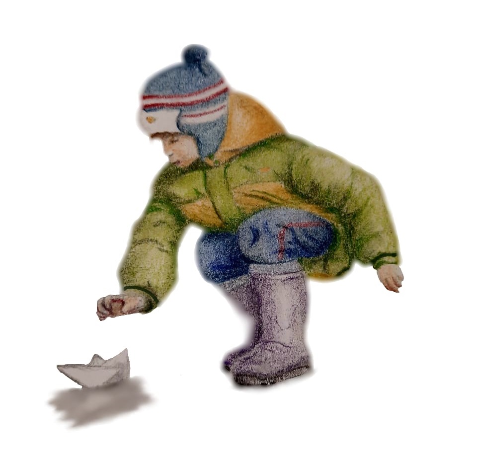 Когда ребята наигрались в корабли, мама уже ушла домой. А ребята стали ходить по улице в поисках чего-то нового.