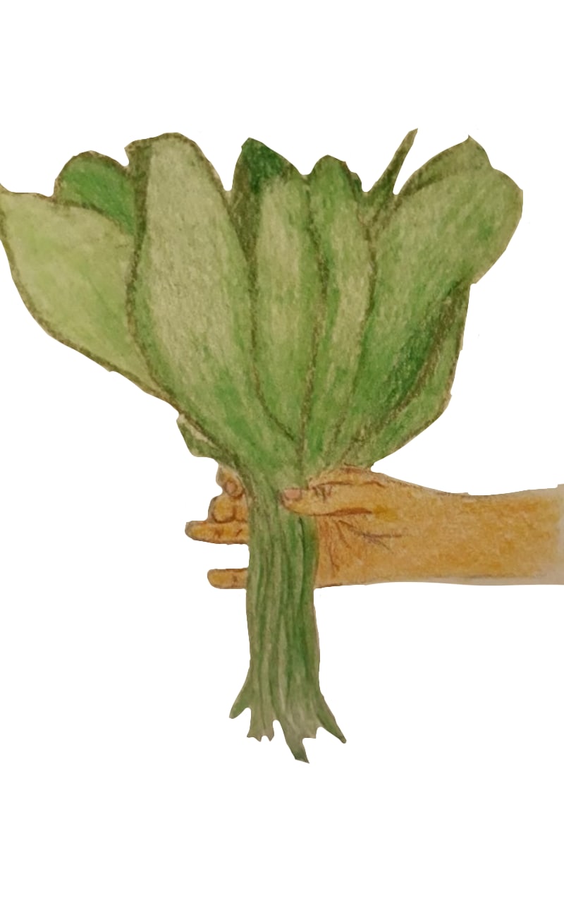Коля и Катя прибежали домой, чтобы спросить у мамы, что можно им вынести из огорода в магазин. Мама разрешила нарвать только немного щавелевых листьев.