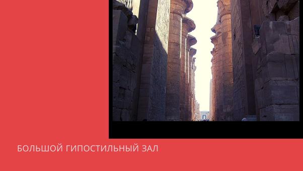 Большой гипостильный зал – самый большой в мире каменный зал с перекрытием, площадь которого 5000 кв.м. Крыша до наших дней не сохранилась. Центральные колонны зала выше остальных – 24 м и 10 м в окружности. Он создавался по приказу нескольких фараонов.