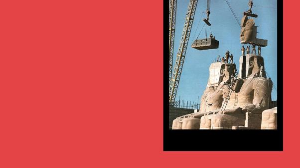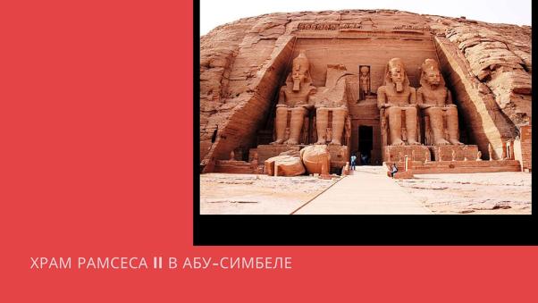В 60-х гг. XX в. эти сооружения перенесли. Вот так вот взяли два огромных храма и подвинули метров на 200. Дело в том, что из-за строительства Асуанской плотины и разлива озера Насер здания бы пострадали. Был придуман грандиозный проект, по разделению храмов на блоки по 20 – 30 тонн, переносу на новое место с последующей сборкой.