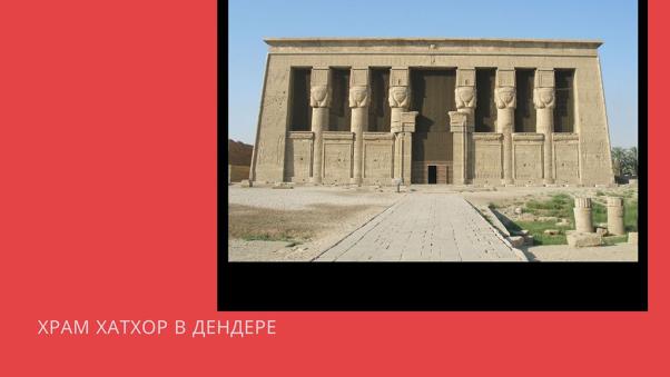 Богине Хатхор посвящен храм в Дендере, построенный уже во время правления Птолемеев, которое длилось с IV по I вв. до н.э.