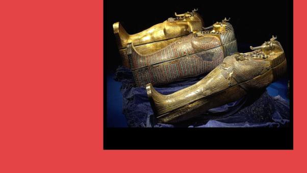 Сохранность мумии умершего обеспечивали не только гробницы, но и саркофаги. Самый полный набор саркофагов и ковчегов сохранился в известной гробнице фараона Тутанхамона. Это внешний прямоугольный саркофаг из цельного куска красного кварцита с гранитной крышкой, в нем – деревянный с позолотой, потом еще один деревянный с позолотой, а последний – из золота. Каждый из трех – антропоморфный, т.е. выполнен в форме человека.