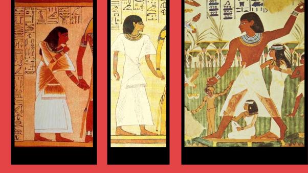 Еще одним оберегом, защищающим умершего были росписи гробниц. Если Вы хоть раз видели изображения древнеегипетской живописи, то заметили странный способ показывать людей. Это специфический канон, когда лицо и ноги – в профиль, плечи – в фас, глаза – увеличены и подчеркнуты. Мужчина нарисован красной краской и зачастую – выше, женщина – желтой, дети еще меньше ростом, но изображались как маленькие взрослые, а младенцев рисовали голыми.