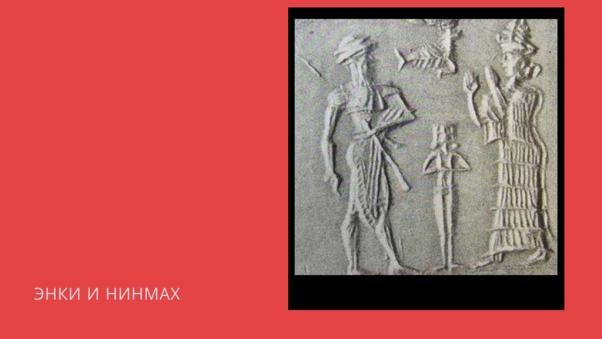В другом мифе “Энки и Нинмах” идея создания человека принадлежит матери Энки – Намму, на что он ей отвечает: “Мать моя, творенье, что ты назвала, уже существует”.