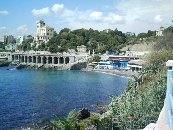Съездила вчера на море недалеко от Генуи. Вода очень теплая, только берег здесь каменистый. Купила проездной на неделю. Он может использоваться как на автобусе, так и в метро, в поезде на определенное расстояние. Стоит 12 евро. И я теперь езжу везде по городу, пересаживаюсь и таким образом знакомлюсь с Генуей.