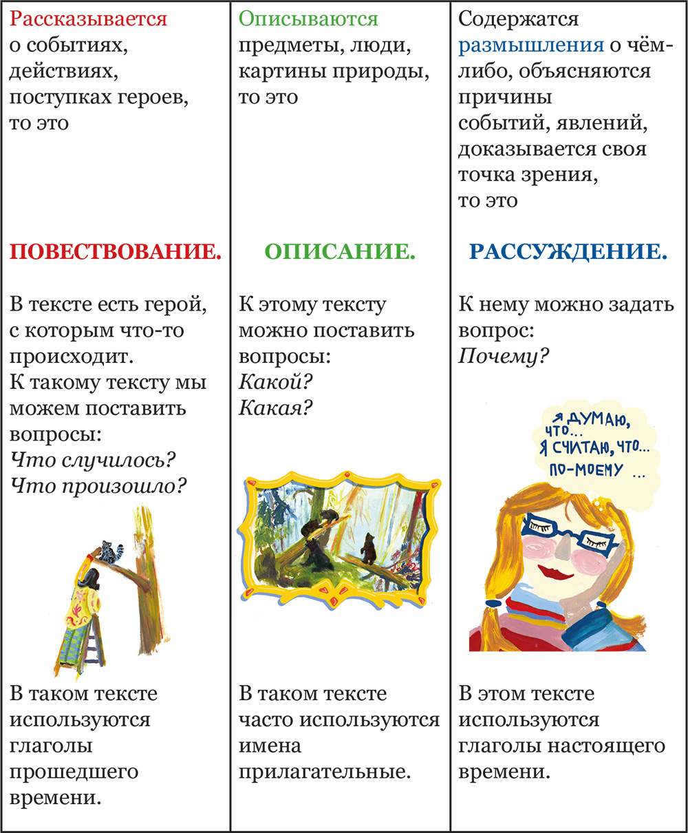 1-текст-повествование, 2-текст-описание, 3-текст-рассуждение.