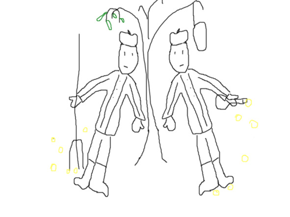 Вот настала ночь. Бабка легла спать, Танюшка легла спать, кошка легла спать, собака легла спать, куры легли спать, только дедушка не лег. Собрался потихоньку, пошел в лес. Пришел в лес, наковырял с елок смолы полное ведро и вернулся домой.