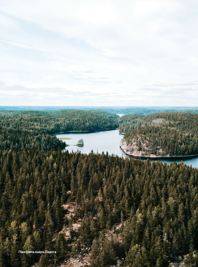 У ландшафтов Карелии два цвета – голубой и зеленый. Более половины территории республики покрыто лесом, и четверть составляют водные просторы. Местные жители даже вывели формулу карельского леса, зашифровав ее в коде: «4С» «3Е» «2Б» «1О». Это означает, что он на 40 % состоит из сосны, на 30 % из ели, на 20 % из березы и на 10 % из осины.