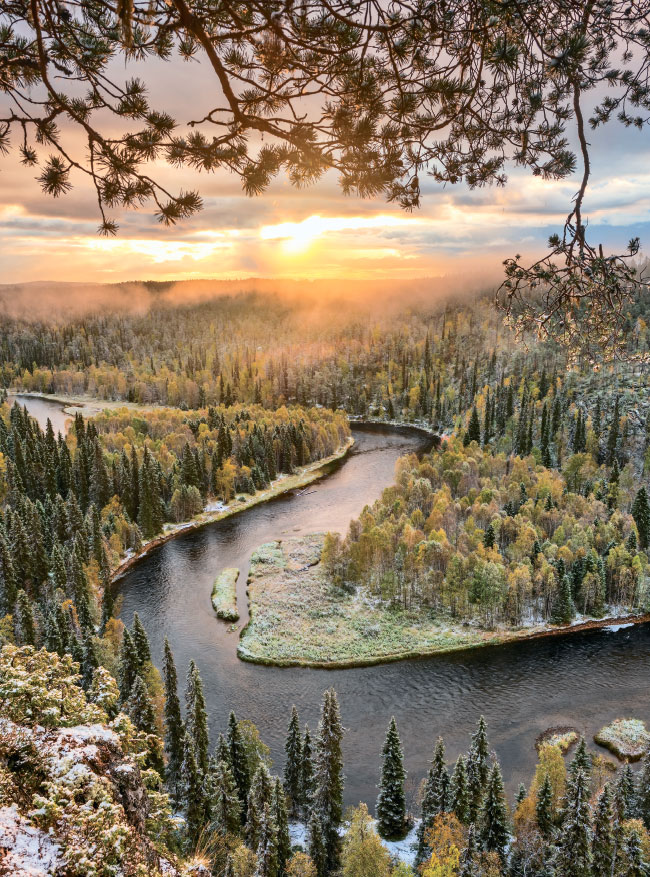 Карелию можно постигать по-разному – с удочкой на берегу, в пешем походе по национальным паркам, в культурном паломничестве по древним монастырям, не переставая удивляться, восхищаться и слушать тишину. В одну сторону шагнешь – на черничный ковер наступишь, в другую – брусничную поляну примнешь. Одних только озер здесь более 60 тысяч, от крохотных лесных «ламбушек» до Ладоги и Онеги, больше похожих на моря. Впрочем, море в Карелии тоже есть – студеное Белое море.