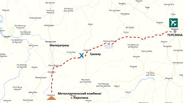 На этом фоне аналитики «логов» вначале предложили в качестве перевалочного пункта Форталезу – город, расположенный на берегу Атлантического океана. Он имел развитую сеть подъездных путей, аэропорт и океанский порт с грузовыми терминалами. Но приморское расположение города представляло определённую опасность: с моря амеравийцы могли воспрепятствовать отгрузке тапириума. Поэтому Нати приняла решение найти в глубине материка удобный аэродром для отправки груза, и выбор пал на аэропорт города Терезина, до которого груз не довезли.