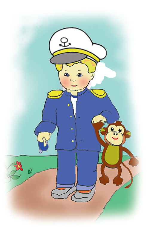 Мой любимый брат Иван –Настоящий капитан.У него костюм парадныйУдивительно нарядный.Брат в фуражке с козырькомИ в рубашке с якорьком.Все соседи брата знают,И прохожие кивают.Только брат, скажу я вам,Не глядит по сторонам:Занят он своей пустышкойИ резиновой мартышкой.