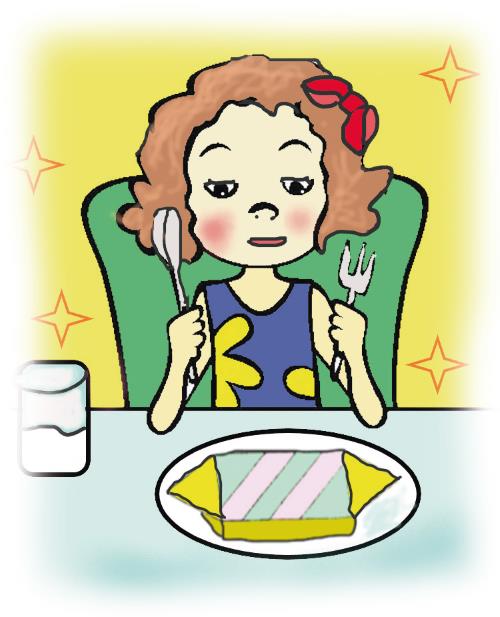 Взяла вилку, взяла ложку.Собираюсь есть картошку,Хлеб, сметану и котлету.А ещё хочу конфету!